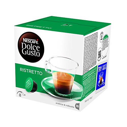 -. Feature : Der kleine Schwarze für das besondere Italien-Feeling / Vollmundig und aromatisch mit samtweicher Crema und intensivem Geschmack / Nicht so kräftig wie der Espresso Intenso, aber stärker als der Espresso / Die Kapseln sind ausschließlich für Nescafé Dolce Gusto Maschinen geeignet / 1 Packung Dolce Gusto Espresso Ristretto mit 16 Kapseln für 16 Portionen