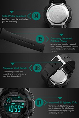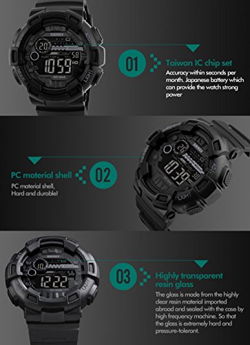 -. Feature : 【本体サイズ】ケース直径:50mm ケース厚み:17mm バンド長さ:250mm バンド幅:21mm 本体重量:約60g カラー:ブラックデジタル時計 どんなスタイルにも合わせやすい定番の色! / 【素材】ケース素材:高硬度PC バンド素材:ソフトPU 風防素材:高透明樹脂レンズ バックル素材:ステンレススチール 日本製ムーブメントを採用し、精密度や耐用性が高い、長く愛用できます。 / 【多機能スポーツ時計】 デジタル表示機能:日付/曜日/時分秒/ELバックライト/アラーム/時報/12/24H時間制/オートカレンダー/ストップウォッチ/ダブルタイム/カウントダウン/5ATM防水 LEDライト付きのデジタル表示でオンとオフどちらでも使用できます!アウトドアにも対応した多機能デジタルウォッチ。 5気圧安心の日常用強化防水仕様。防水性など普段使いには十分なスペックを備えています。 ※5ATMとは、日常の生活防水、手洗いスプラッシュ程度、雨に濡れないようにしてくださいませ。 / 【セット内容】デジタル腕時計本体*1、内蔵電池*1、日本語説明書*1(エコーのため、メールにて添付させていただきます、どうかご理解ください。)、専用ボックス付き 三ヶ月以内に返品、交換サービスを提供しております。類似商品なら、ご注文になる時、どうぞ出品者Menstimeにお問い合わせください。 / 【どんなシーンにも】ランニング、登山、釣りなどのアウトドアスポーツとアウトドアスポーツに最適です。 柔らかいシリコンのストラップで着用すると非常に快適! カジュアルなスタイルにもマッチし、スーツでも活動的なイメージと雰囲気で、いろいろなシーンで着けこなせます。 お仕事でもプライベートでもご使用可能。大人気のメンズスポーツ腕時計です。最高のプレゼントにオススメのかっこいいウォッチです。
