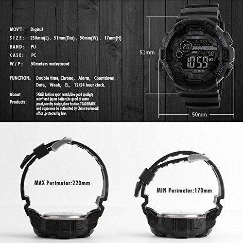 -. Title : Menstime(メンズタイム)腕時計 防水 スポーツ デジタル表示 多機能ウォッチ 5ATM防水 ビッグフェイスデザイン 見やすくてかっこいい