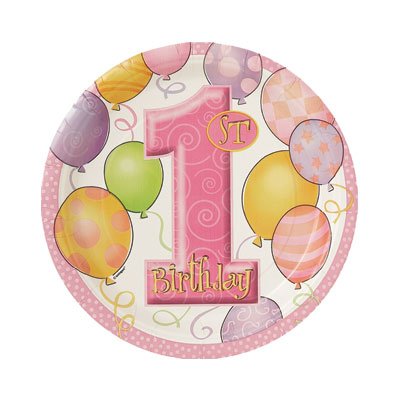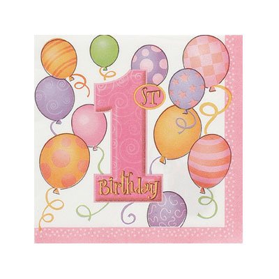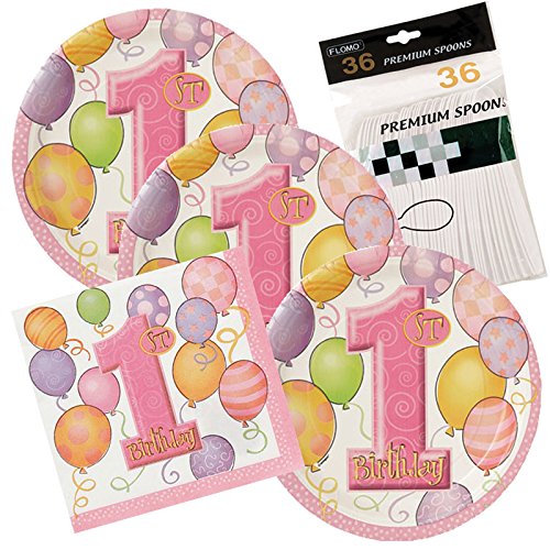 First Birthday Balloons Pink Party Themed Dessert Plates And Napkins includes Spoons Serves 32