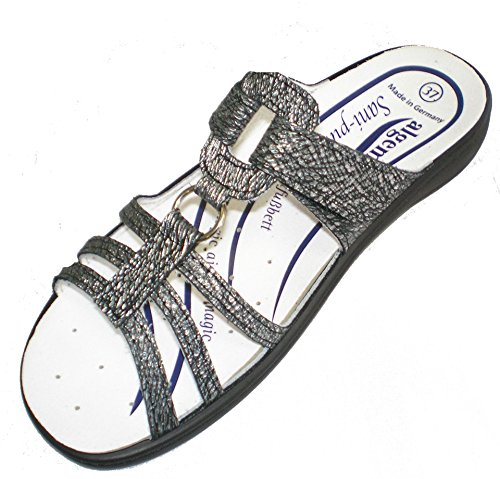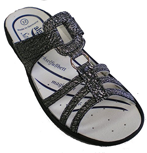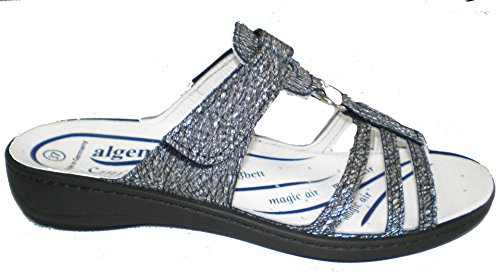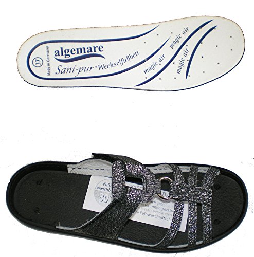 Binding : Apparel Product Description Algemare 3464-9088 Ladies Clogs with velcro closure, color: graphite, upper: leather, inner lining: leather, removable insole (also suitable for loose insoles), manufacturer's information: The Sani-pure replacement footbed provides optimal cushioning when performing and supports the foot the entire rolling motion. Due to the enormous moisture absorption, a dry foot is always guaranteed. The refinement with an additive from Sanitized AG makes the footbed antifungal, antibacterial and prevents unpleasant odor. In addition, the footbed in the washing machine in a linen bag at 30 degrees washable or can be cleaned with a hand-warm soapy water and a hand brush carefully. 0