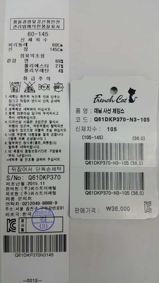 ■소 ; ; ; ; ; ; 재 : ;면 69% 폴리에스터 27% ;폴리우레탄 4%