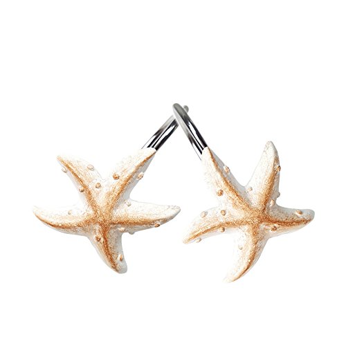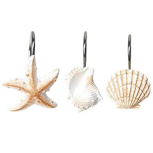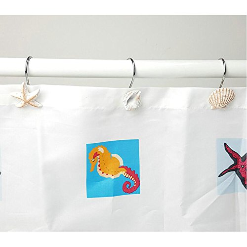 YYC Set of 12 Resin Shell Conch Starfish Shower Curtain Hooks Bathroom Decoration Hooks