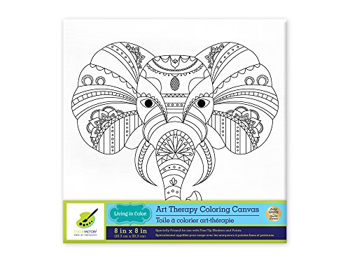 Living in Color Art Therapy Stretch Artist Canvas Primed, 8in x 8in, Color your own beautiful design on Canvas, Elephant