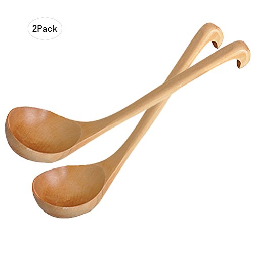 Generic Natural Wooden Spoon Classic Wooden Kitchen Soup Ladle International Bamboo Kitchen dinnerware Tools 2 PCS