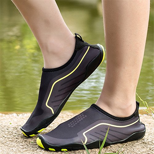 Features: *Easy On Off The pull tap at the heel allows for quick and easy entry, protecting your feet from dripping off. *Upgraded Drain Sole Quick drain and anti-slip rubber outsole. Offer great traction for any surfaces, differed from other shoes. *Ultra Lightweight Lightweight and compressible for easy packing,convenience for leisure or any other sport activities. *Perfect Multi-use Shoes Perfect for water park, water aerobics,surfing, beach volleyball, pilates, weight training, wake-boarding, sailing, swimming,boating, kayaking, windsurfing, cycling jogging, walking, fishing, garden, lawn, car-washing and driving and yoga.