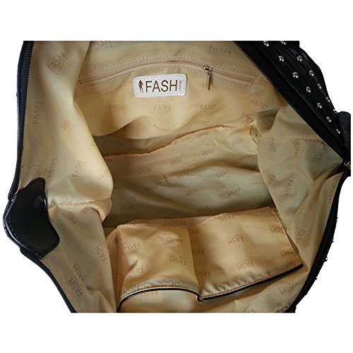 Get home this Metal Studded Faux Leather Hobo Style Shopper Top Handle Handbag by FASH at an unbelievable price. Scroll above to know more about the offers we have for you