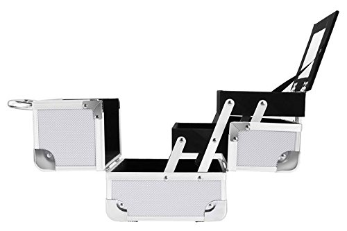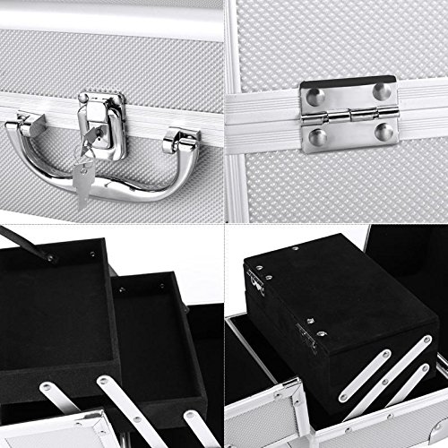 High Quality Aluminum Frame Finish and Construction-- the portable chromed swivel handle add comfort to the cosmetic organizer; the lockable front clasp with two keys make case secure so you can lock it for easier travel; vinyl interior lining in the bottom of each compartment, easy to clean in case your makeup spills