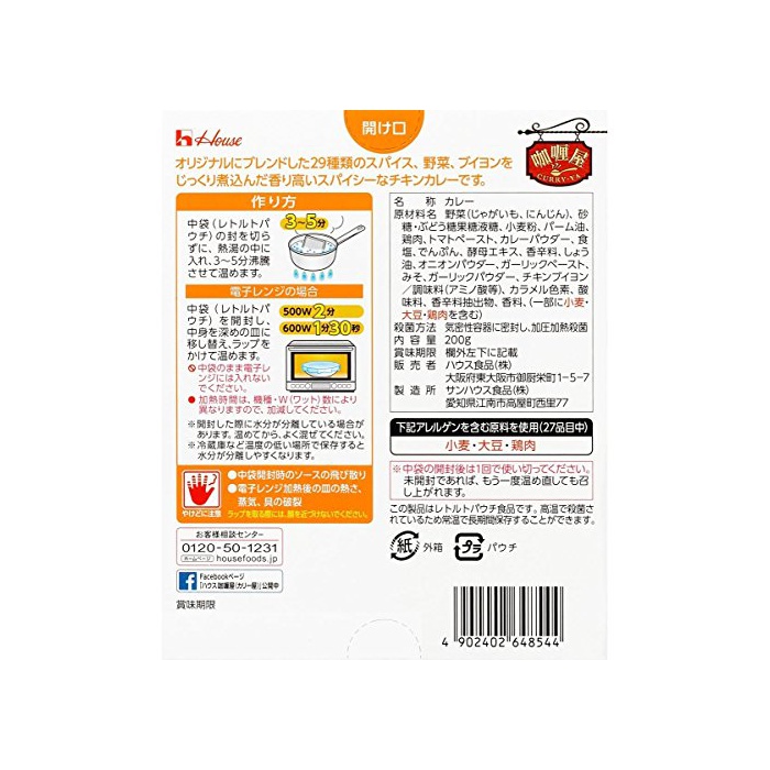 원본상품명: ハウス カリ?屋チキンカレ?中辛 200g