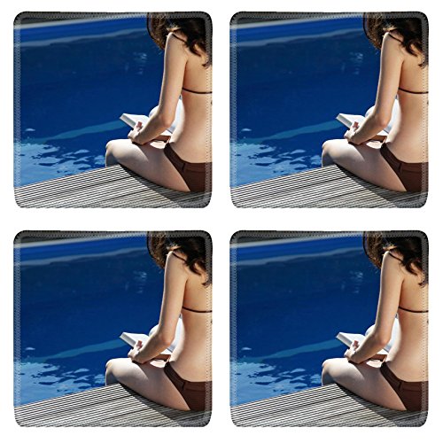 - Title : Liili Square Coasters (4 Piece) An attractive young woman wearing a bikini and reading a book swimming pool Photo 6275077 Set Cup Mat Mug Can Water Bottle Drink Customized Stain Resistance