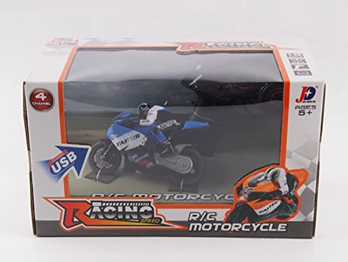 リアルなラジコンバイク。エンジンサウンド、サスペンション機能付。付属のUSBケーブルでPC等から充電可能。グリップ式コントローラで前進、ブレーキ、左右の操作可能。コントローラの電池挿入時に必要なミニドライバー付。※輸送中にタイヤのゴムがズレる場合がありますのでタイヤが回転するか確認してからお遊びください。