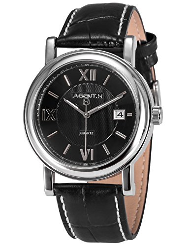 -. Title : [エージェント エックス]Agent X 腕時計 日付表示 ブラック レザーバンド メンズ