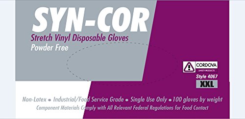 Cordova Safety Products 4067XL Syn-Cor Plus Stretch Vinyl Powder Free Disposable Gloves, X-Large