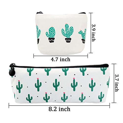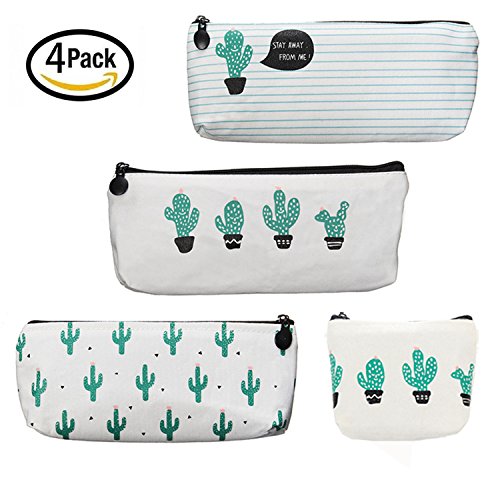 Set of 4 Bingolar Pencil Case Canvas Student Pen Pencil Case Coin Purse Pouch Cosmetic Makeup Bag Cactus Pastoral Bandage Canvas Pencil Case with a Coin Purse Pencil Pen Case.