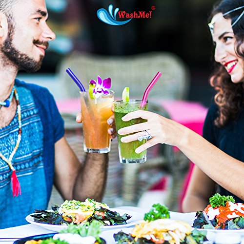 SIP IN STYLE WITH DRINKING STRAWS MADE FROM HIGHEST QUALITY GLASS --- Make a smart addition to your kitchen cabinet with these colorful glass straw set by WashMe. They are made using the tough & strong borosilicate glass, and are totally chic and perfect for every occasion. You can use these glass straws again and again for sipping in hot and cold beverages.