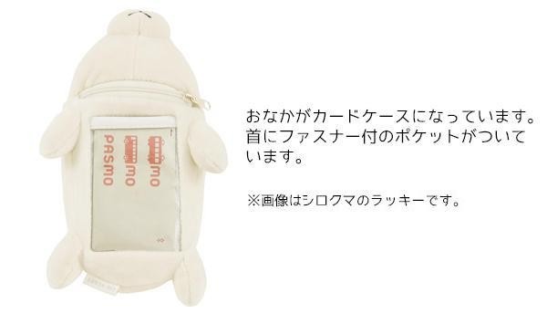 プレミアムねむねむアニマルズのパスケース。お腹側にICカードや定期券が入ります。リール付きなのでバッグに付けたまま改札を通れます。ファスナー付きのポケットも付いているので小物を入れるのに便利!! |