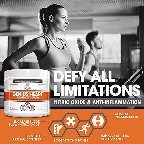 -. Feature : BLOOD PRESSURE SUPPORT SUPPLEMENT - Avoid hypertension issues with our proven, all-natural grape seed extract; nature's treatment for high BP; our proven remedy boosts circulation providing vein support throughout the body / NATURAL CHOLESTEROL LOWERING PRODUCT - Maintaining a proper LDL/HDL ratio is extremely important to cardiac function & cardiovascular health; Genius Heart works as an LDL lowering supplement to stabilize healthy cholesterol / BREAK-THROUGH BRAIN BOOSTER SUPPLEMENT - Boost focus, mental clarity and reduce brain fog by improving cardiac function; the heart & brain are synergistic and with a healthy heart you'll find yourself w/ a boosted brain / NITRIC OXIDE (N.O.) FOR MEN & WOMEN - By safely elevating nitric oxide levels throughout the body, Genius Heart works to expand blood vessels providing healthy vein support while combating varicose (spider) veins / BOOST CARDIOVASCULAR ENDURANCE & PERFORMANCE - A strong heart boosts endurance by delivering more oxygen and nutrients throughout the body; boost anaerobic endurance with an improved cardiovascular system
