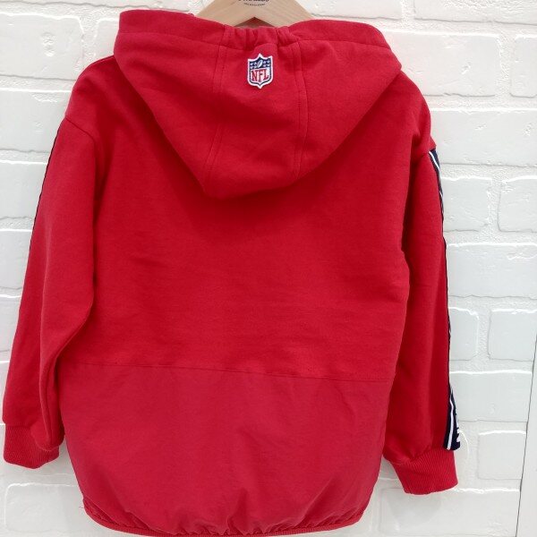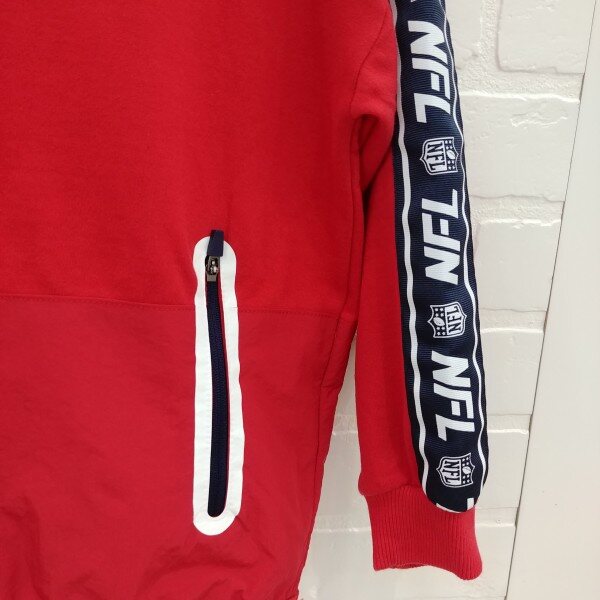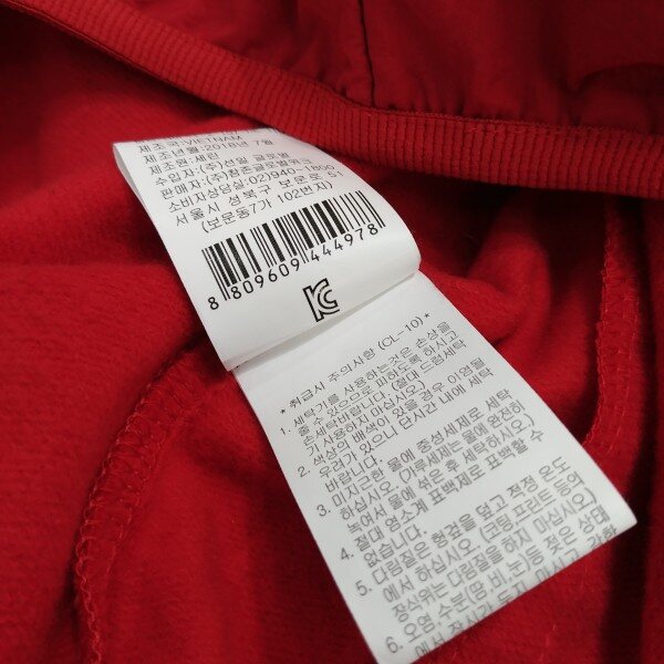 소매 로고 테잎으로 포인트를준 후드 티셔츠, 화섬배색부분의 프레스 지퍼와 후드의 와펜 자수도 주요 포인트, 약기모가 있슴.