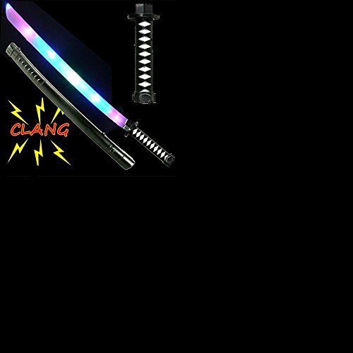 Deluxe Ninja LED Light Up Sword with Scabbard Ninja Sword,1x Ninja sword Cover Scabbard for Halloween Party, Costume Accessories BETTER QUALITY-Superior Quality: Super Durable. Longer Lasting. Product Dimensions: 26.2' * 2.8' * 4.8' NINJA SWORD LIGHT and SOUND FEATURES:Features: Multicolored LED Sword Safe Blades with Detailed Silver & Black and Easy-to-Grip Design Handle. Easy On and Off Motion Activated Ninja Clanging Sound Button Located on the Handle. Motion Activated Ninja Clanging sounds for Realistic Play.