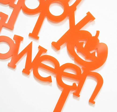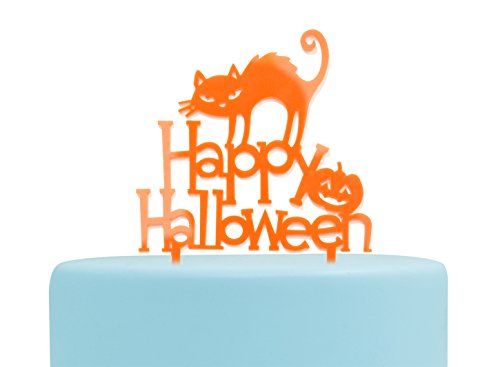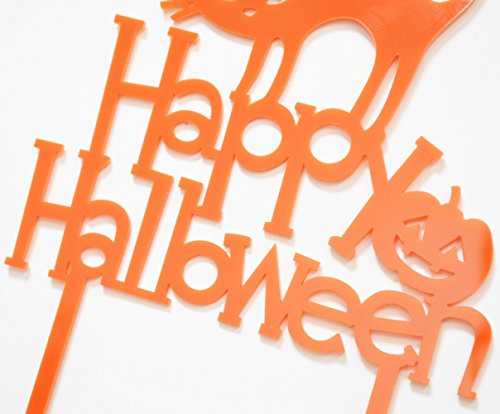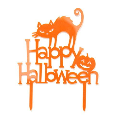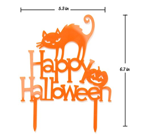 Qttier(TM) Happy Halloween With Cat and Pumpkin Cake Topper, Premium Quality Acrylic Halloween Decoration Supplies with Cardboard Packaging