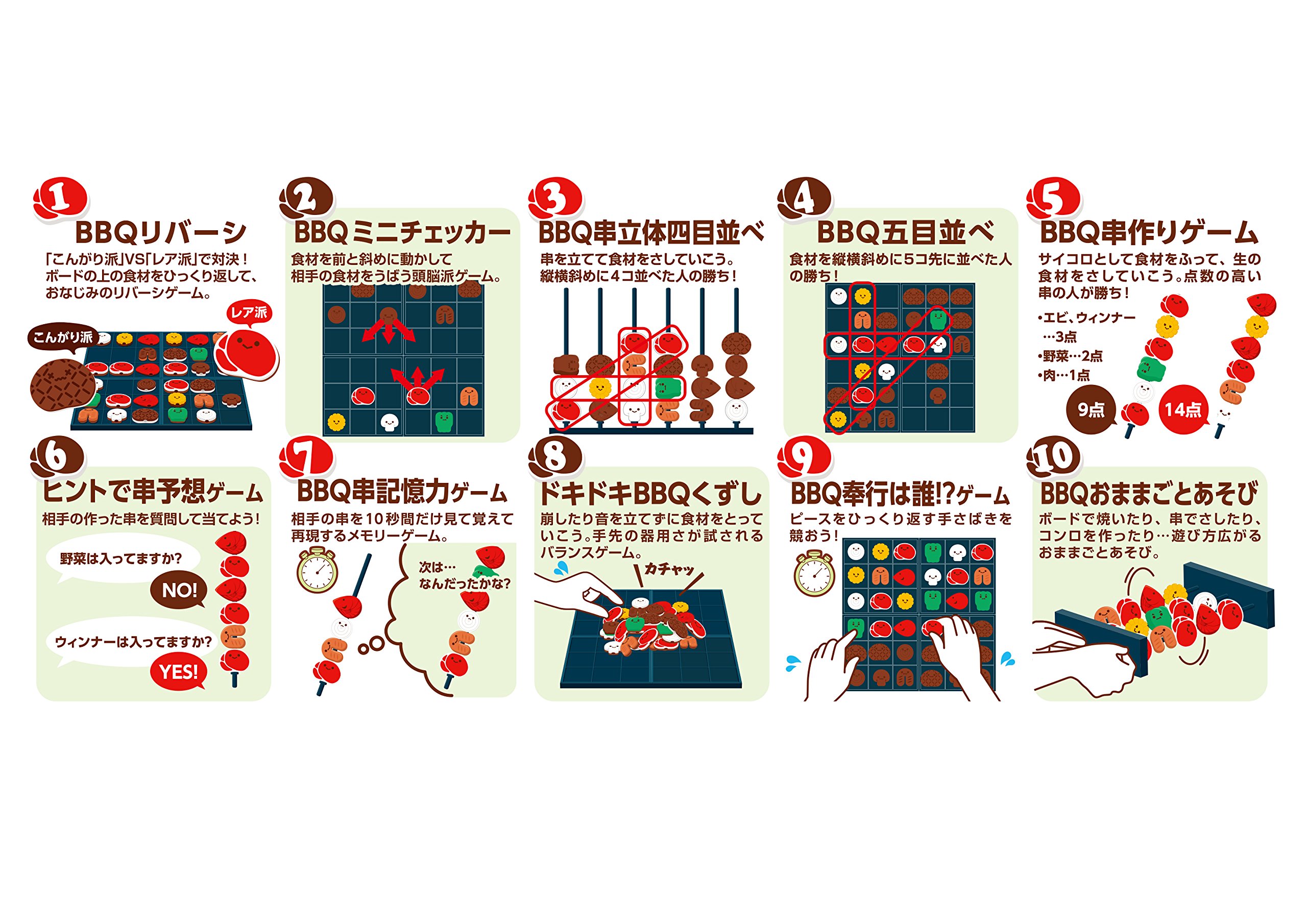 BBQ skier making game, · skewer prediction game with hint · · BBQ skew memory game, BBQ skewing game, · BBQ skewing game,