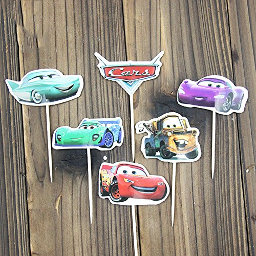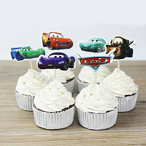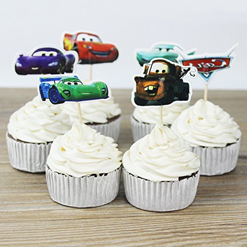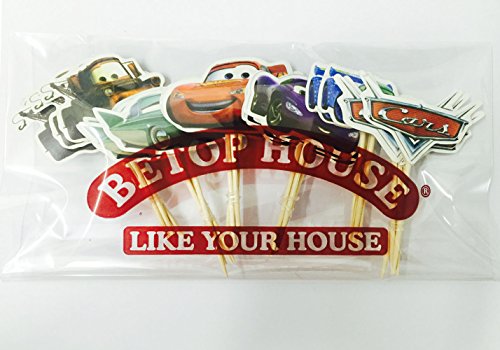 Betop House Set of 24 Pieces Cars Themed Decorative Cupcake Topper for Kids Birthday Party Baby Shower