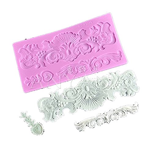 Anyana Baroque Vintage Scroll sculpted edible lace mould cake Fondant gum paste mold for Sugar paste gumpaste designer cupcake decorating topper decoration sugarcraft decor