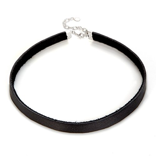 A stylish black leather choker that is 12 3/4 inches long.