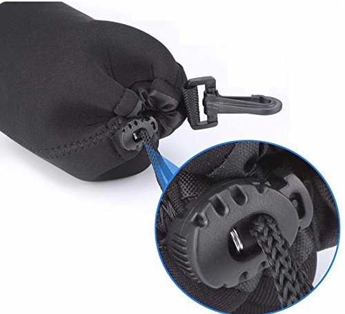 Specification: Note: The stock of the useful height is 2-3 cm lower than the total height because of the drawstring closure. To waterproof, full protection for the lens With hook, may lay in the bag or belt easily Colour Black Soft neoprene made Package Content: 1 / 4 x Neoprene Soft Waterproof Bag Camera 0