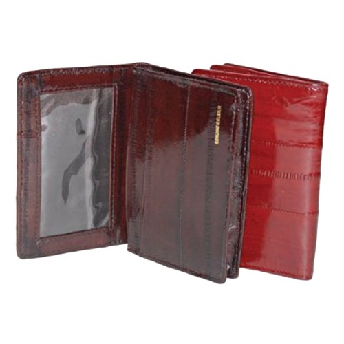 Product DescriptionMaterial: Genuine Eel SkinSize: 4? x 3? (Folded)Credit Card Slots: 1 I.D. Window: Yes (Flip up I.D. Window)Other features: One pull out pocket0