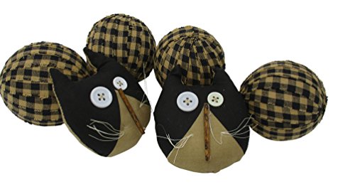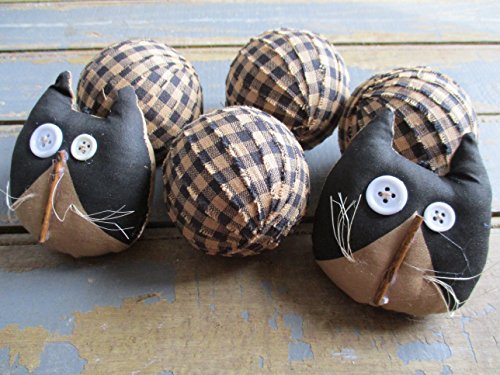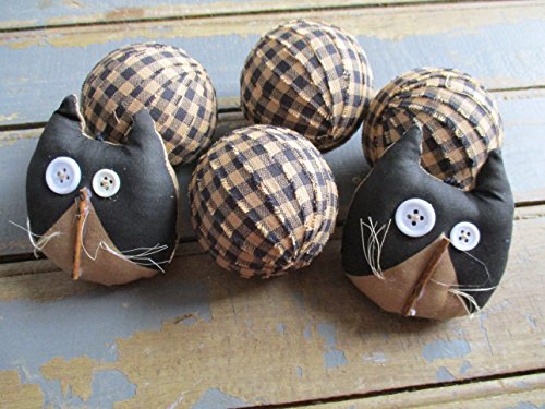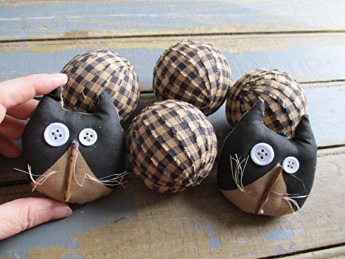 Rag Balls and Primitive Cats Black and Tan Gingham Rag Balls Bowl Fillers