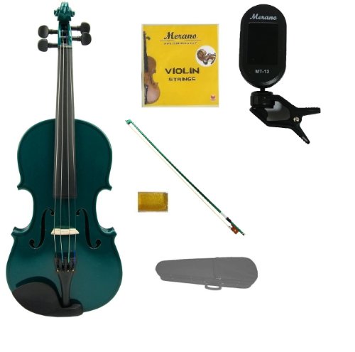 -. Title : Merano 3/4 Size Green Violin with Hard Case, Green Stick Bow+Free Rosin+Extra Set of Strings+Merano Chrometic Clip On Tuner