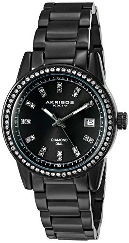 -. Title : Akribos XXIV Women's Genuine Diamond Hour Markers on a Black Sunburst Dial and Crystal Accented Bezel on Black Stainless Steel Bracelet Watch AK928BK
