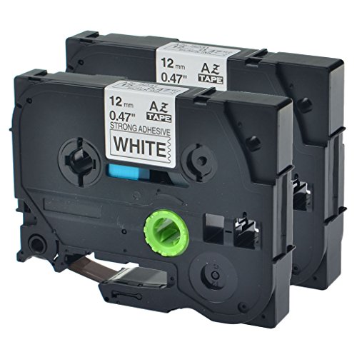 GREENCYCLE 2PK Extra Strength Adhesive Black on White Label Tape Compatible For Brother TZE-S231 TZ-S231 TZeS231 ,0.47 Inch ,PT-D210 Labeling Maker