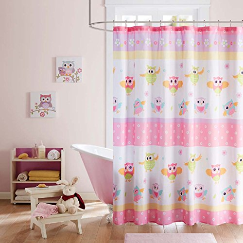 Mi Zone Kids - Hooting Haley Owl Printed Shower Curtain - Pink - 72(W)" X 72(L)"- Machine Washable