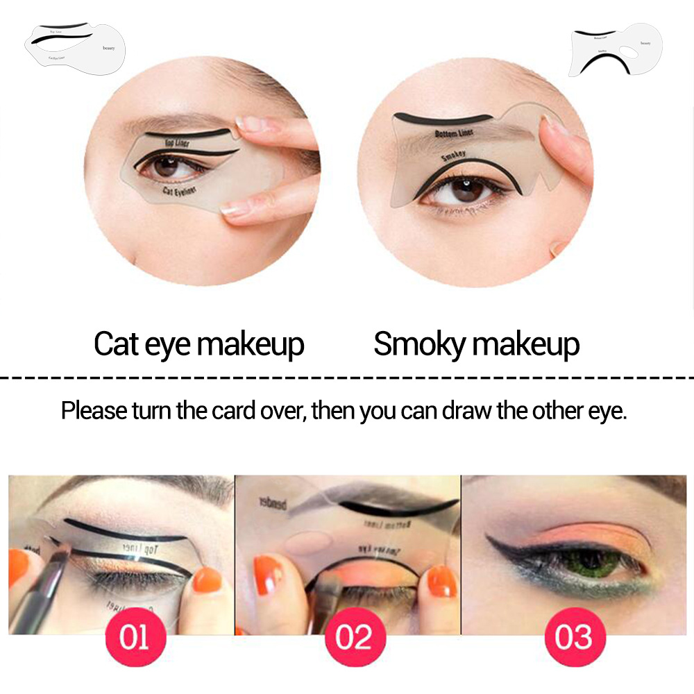 2pcs/Set Perfect Cat Eye u0026amp; Smokey Eye Makeup Eyeliner Models Template Top Bottom Card Auxiliary Tools Eyebrows Stencils DIY Stencil Card u0026nbsp;(Color: white)