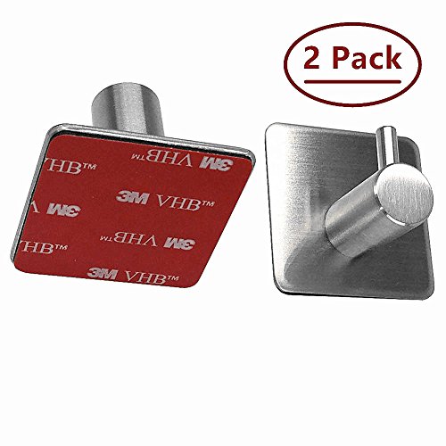 Towel Hook,Robe Hooks Coat Hanger Brushed Finish SUS304 Stainless Steel with Self Adhesive for Kitchen Bathroom - 2 Pack - by Yolice