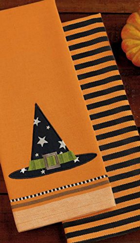 - Includes one witch hat appliqué towel and one coordinating stripe towel