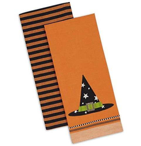 DII Kitchen Dish Towel Set 2 Cotton Halloween Witch Hat Theme