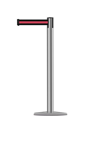 Tensabarrier 889U-3P-3P-STD-NO-S2X-C Polished Stainless Post, 2" Wide, 7' 6" Length "Stripe Black & Red" Belt, 90" Length, Steel
