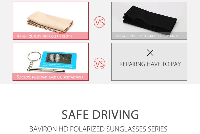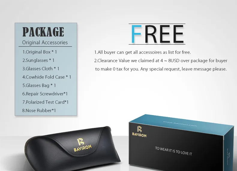 Eyewear accessories:Box,Cloth,Case,Bag,Repairing Screwdriver,Test card,Nose Pad