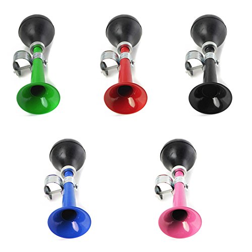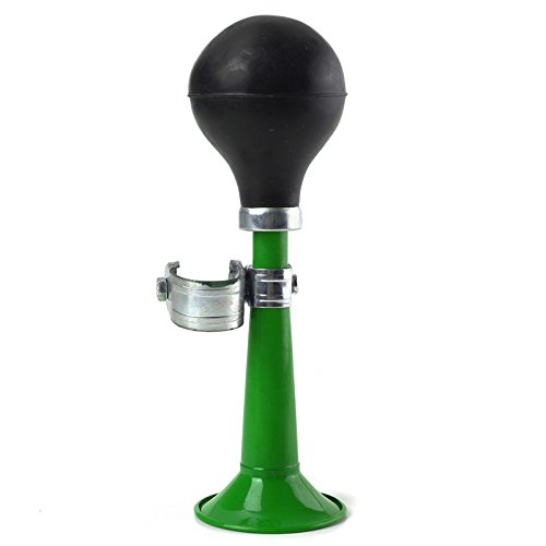 Product DescriptionDescribtion: Bulb: Rubber Material: Light Metal Length: approx 18cm (7") Color: Black, Red, Green, Blue, Pink Features: Can be fixed easily to the handlebar Loud enough to warn other road-users Squeeze the rubber bulb and the horn makes the classic two tone honk Package includes: 1 x Bicycle Bike Cycling Retro Metal Air Horn0