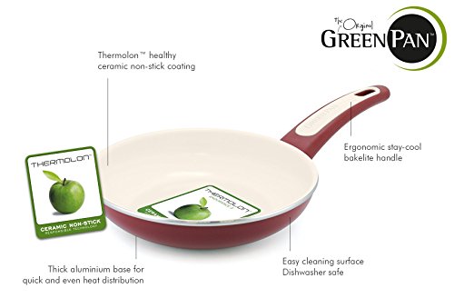 The GreenPan Focus range is designed for a trendy kitchen without compromise. The aluminum 8" Ceramic Non-Stick Open Frypan with a burgundy exterior body, combined with the cream Thermolon ceramic non-stick coating is a favorite amongst foodies and design addicts. But let's not judge the collection by its color, because the Focus range has a lot more in store. It is dishwasher safe and extra convenient thanks to the stay-cool Bakelite handle. Complete with a limited lifetime warranty for worry-free cooking. In short: a trendy and healthy companion in any kitchen!Feature