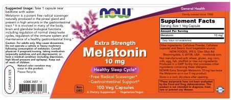 ReleaseDate : 2014-07-01 Studio : Now Foods Publisher : Now Foods Binding : Health and Beauty Product Description Melatonin is a potent free radical scavenger naturally produced in the pineal gland and present in high amounts in the gastrointestinal tract. It is involved in many of the body, brain and glandular biological functions including regulation of normal sleep/wake cycles, regulation of the immune system and maintenance of a healthy gastrointestinal lining. 0