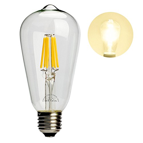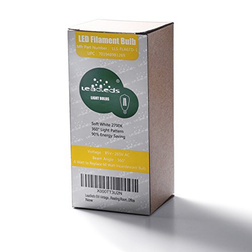Leadleds 6W Edison Style Vintage LED Filament Light Bulb, 2700k Soft White 610LM Non-dimmable, E27 Medium Base Bulb, ST21(ST64) Antique Shape, 60W Incandescent Equivalent