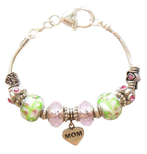 -. Binding : Jewelry -. Brand : Charmed By Dragons -. Department : Womens -. Feature : Gift for Mom Bracelet In Gift Box / Beautiful Pink Faceted Glass Crystal Beads and Pink & Green Floral Lampwork Beads / MOM Dangle Heart Charm and 2 Mom beads Perfect Gift for MOM (Birthday, Mother's day, Birth of a child, Baby shower) / 8 inch Sterling Silver Plated 3mm Chain, Heart Clasp & Screw On End and Several Accent Beads for Added Texture and Eye Appeal / IN GIFT BOX - Ready for gift giving -. Label : Charmed By Dragons -. Manufacturer : Charmed By Dragons -. PackageQuantity : 1 -. ProductGroup : Jewelry -. ProductTypeName : FASHIONNECKLACEBRACELETANKLET -. Publisher : Charmed By Dragons -. Size : 8 inch -. Studio : Charmed By Dragons -. Title : Gift For Mom Charm Bracelet and Pink Beads 8 Inch Silver Chain In Gift Box