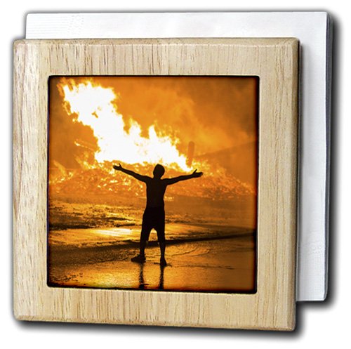 -. Title : 3dRose Danita Delimont - Massachusetts - Massachusetts, Rockport, Fourth of July bonfire, silhouette 02 - Tile Napkin Holders