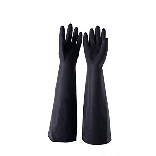 Cindy&Will 1Pair Extra Long Reusable Black Latex Gloves, 23.6"