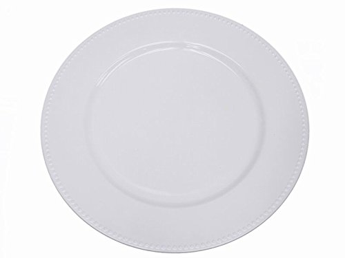 Product Description White Leaf Beaded Edge Charger Plates 13 inches diameter. Solid acrylic base with beaded edging to enhance the appearance of your reception table. Easy to clean, wipe with damp cloth or sponge. Great use with fine china, and protects the linens from the plates bowls. **Charger plates cannot be used as dinner plate themselves. **Inner ring measures 9"; diameter. **Sold in sets of 24 plates. If any chargers are damaged in transit, replacements can only be sent via UPS Ground or Refunded, solely at our discretion. Note: Chargers are manufactured to have circular groove design throughout. This is normal, and is not a defect. 0