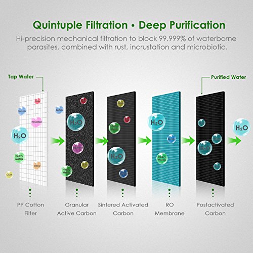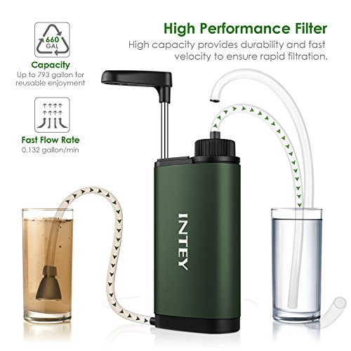 0.01 Micron Fiber Membrane outdoor water filtration With its superior triple filtration system, INTEY water filter is able to filter and eliminate harmful water contaminants, up to 3000L(793 gallons) of water.
